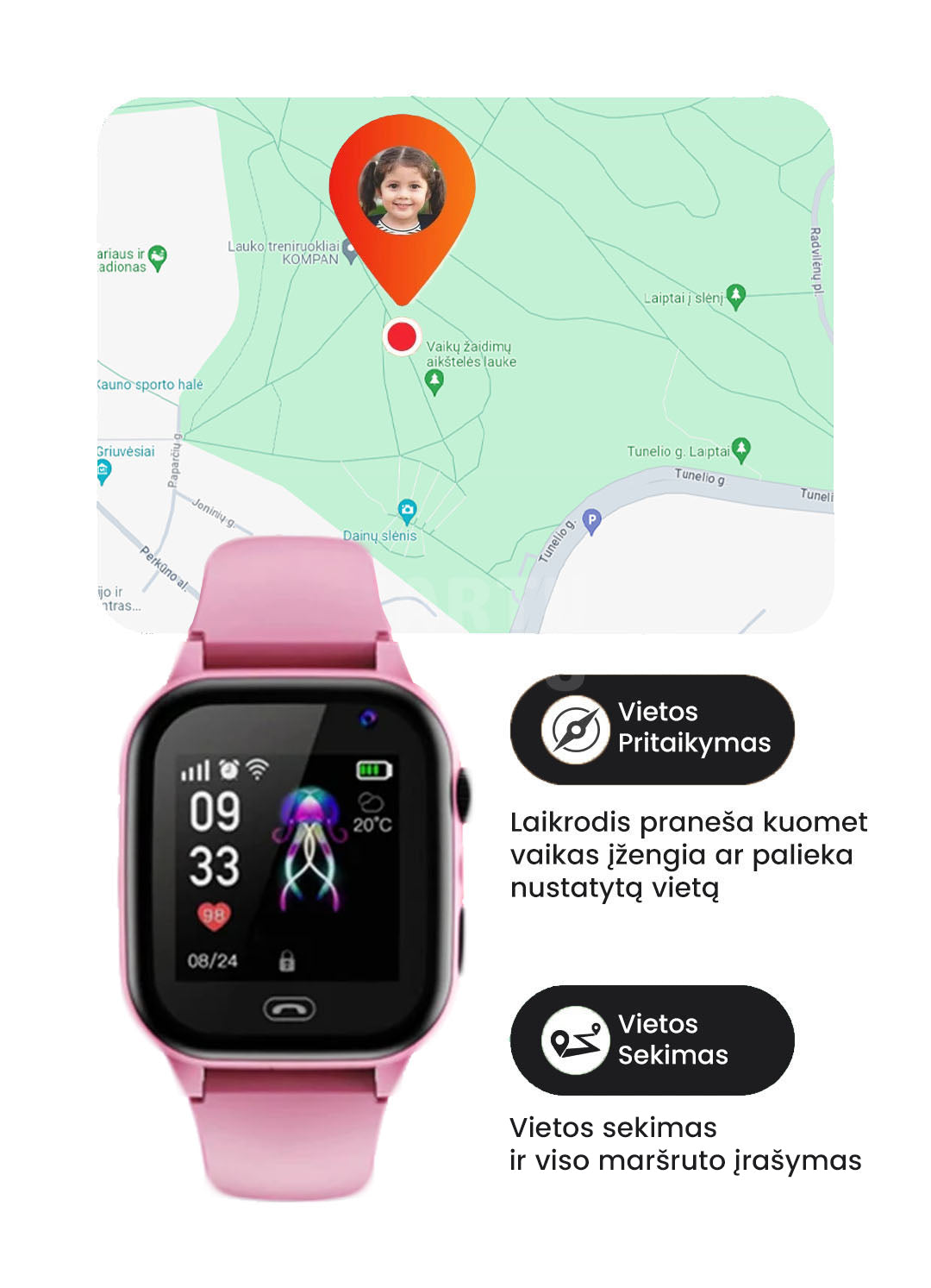Išmanusis laikrodis vaikams su lietuvišku meniu, specialiai sukurtas ikimokyklinio amžiaus vaikams ir pradinukams.