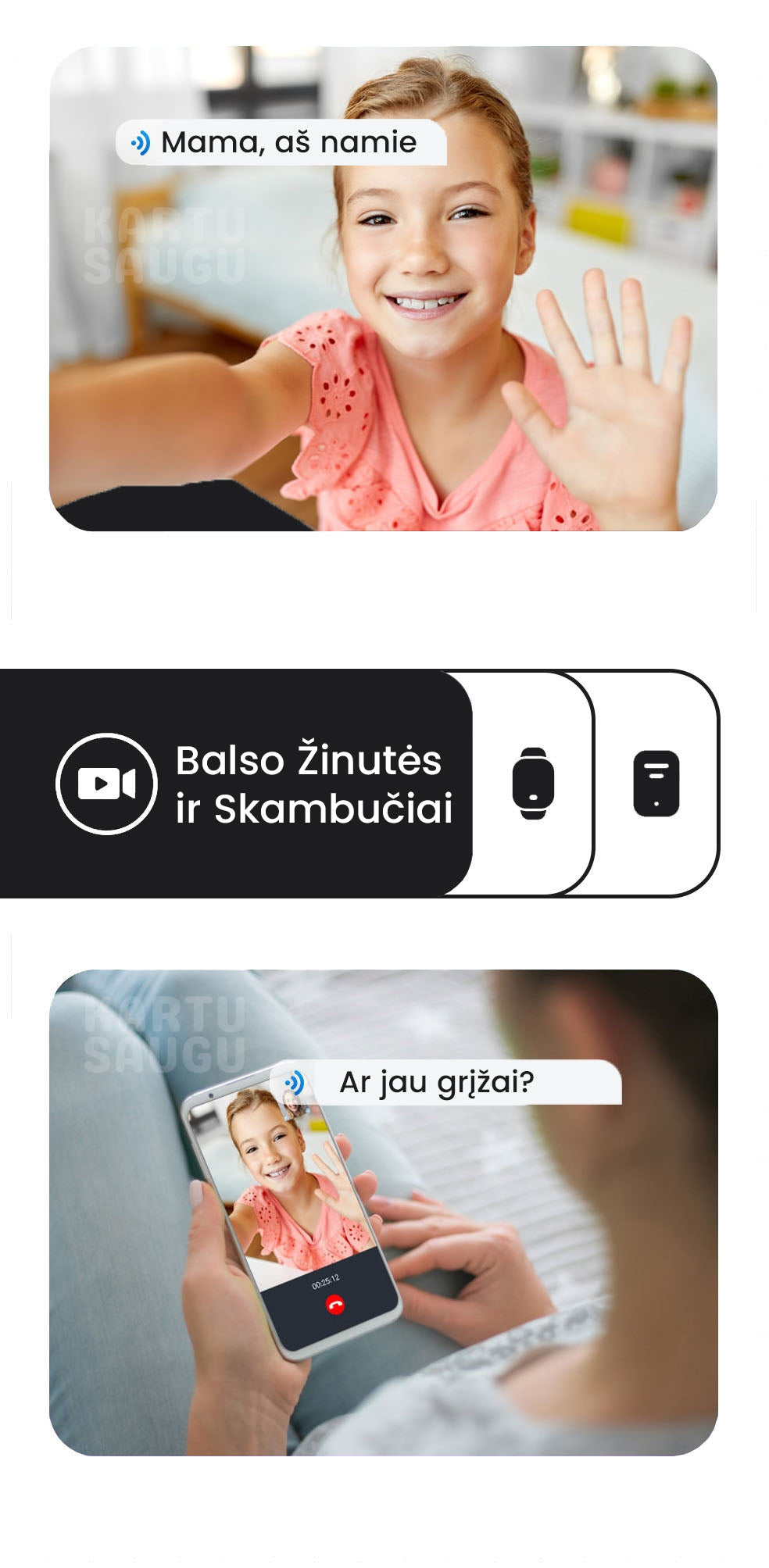 Tėvai per mobiliąją programėlę ir vaikai per laikrodį gali bet kada paskambinti vieni kitiems bei siųsti balso žinutes.